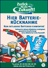 Alle verbrauchten Batterien und Akkumulatoren die vom Kunden bei uns abgegeben werden oder von uns aus einem Gerät ausgebaut werden,